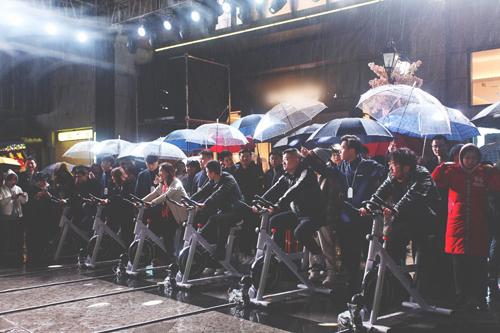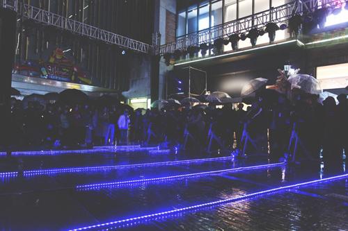 虽然昨晚淅淅沥沥下着春雨,大家的热情却分毫不减,几位参与者更是无比兴奋地用力踩着动感单车,脚下的动力将一条条彩带点亮,随着单车动力的增加在体验店上方交织出一个色彩斑斓的礼物盒,并且绽放出“3·23open”的字样,引发了现场围观者的啧啧惊叹。