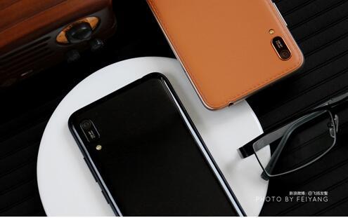这次发布的华为畅享 9e有了幻夜黑,宝石蓝,琥珀棕三种配色。图中的是低调沉稳的幻夜黑配色,和非常有个性的琥珀棕配色。华为畅享 9e琥珀棕配色背部采用的是仿皮革材质,并使用了微米级精雕皮纹工艺,加上soft-touch亲肤漆,从而呈现出一种手感非常细腻的皮质纹理效果。这种处理方式还有一个好处就是不易留下指纹,而且手持时不易滑落,个人非常喜欢这种皮质的感觉。