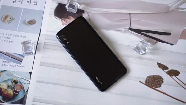 机身颜色方面,华为畅享9e带来了幻夜黑,宝石蓝,琥珀棕三色版本。画面中的这款为幻夜黑版本,机身背部精致深邃看上去好像一块墨玉。在机身两侧,华为畅享9e做了收弧设计,两道对称的曲线将机身与中框连接,看上去更加自然优雅,握感也更加温润。