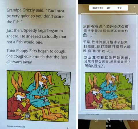 “翻译”,对着英文拍,能自动识别,翻译成中文。这一点也特别实用,或许到了和字典说bye bye的时候了;
