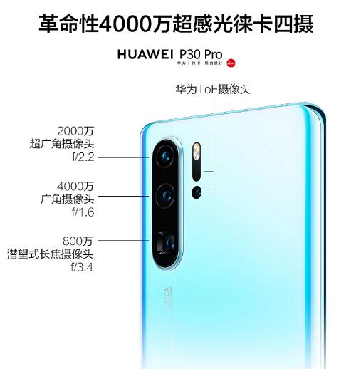拍照方面取得如此佳绩,主要得益于P30 Pro的“超感光徕卡四摄”——四个镜头组合,分别是4000万像素超感光镜头、2000万像素超广角镜头、800万像素潜望式长焦镜头,以及一枚TOF镜头。新一代徕卡四摄与图像信号处理器(ISP)、神经元网络单元(NPU)精密协作,能够更智能更便捷地拍出更精彩的照片和视频。与P20 Pro和去年10月推出的Mate 20 Pro相比,P30 Pro来势更加凶猛。