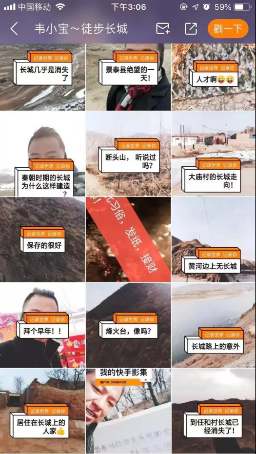 “我们曾经费了很大的力气,在西北走了大半年的时间,操作一个叫做“长城地带”选题。后来我们才发现,我们去过的每一个地方都有很多极具研究价值的主播,甚至有人直播徒步走完了整个长城,如果当年我们就学会了有效使用快手,效率会大幅度提高。”