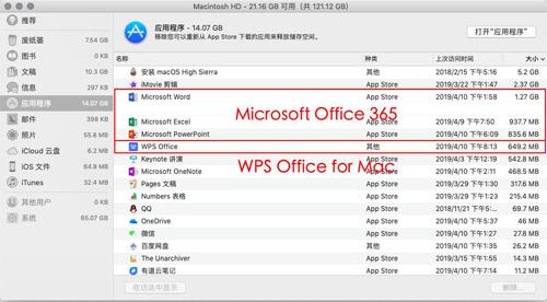 存储空间上,Microsoft Office 365可是有名的“大家伙”,每个软件独立存在。Word、PPT、Excel三个软件共占内存3.04GB。相比之下,WPS Office for Mac更为小巧,本地储存只有649.2M,二者从单位来看就不是一个“重量级”。