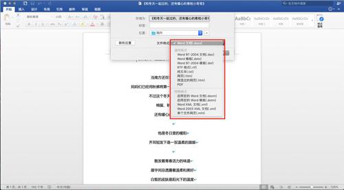 而WPS Office for Mac官方显示该软件支持doc、rtf、html、xls、pptx、pdf等40余种格式。这里小编以Word为例,用另存为的方式来比较Microsoft Word和WPS Office for Mac保存格式的区别。