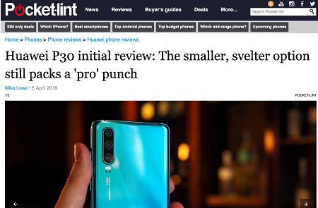 近日,英国最大的独立产品评测网站Pocket-lint对华为P30展开了上手评测,并与华为P30 Pro进行了部分比对,为欧洲乃至全球的手机用户提供了专业的参考意见。他们认为:“虽然华为P30 Pro以令人印象深刻的超高规格水平,成为了年度最佳手机的有力竞争者。但是,华为P30也不甘示弱,拥有更‘苗条’身材的它,尽管没有配备四摄镜头,但也是一款全能型机型”。