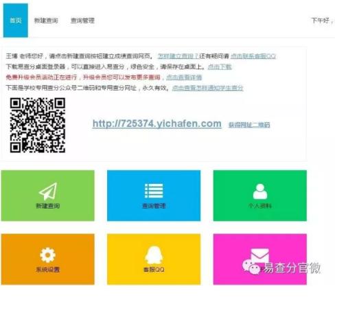 注册易查分后,都有一个永久不变的专用查分网址和查分二维码,只需要通过QQ群、微信群、学校网站等方式,将查分网址和二维码告诉家长,家长就能打开网址,进入查分界面,查询自己分数了,非常简单。