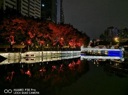 成都是一座气质独特的城市,既有古典韵味,又散发着潮流气息。锦江更是流淌在成都的一条丝带,衬托着成都的柔美神色。参与活动的嘉宾则是乘坐着游船,畅游锦江,体会着这份成都夜色的柔美,并使用华为P30系列尽情记录着魅力的锦江两岸与成都夜景。在赞叹锦江夜色之余,也为P30系列的拍照效果点赞。