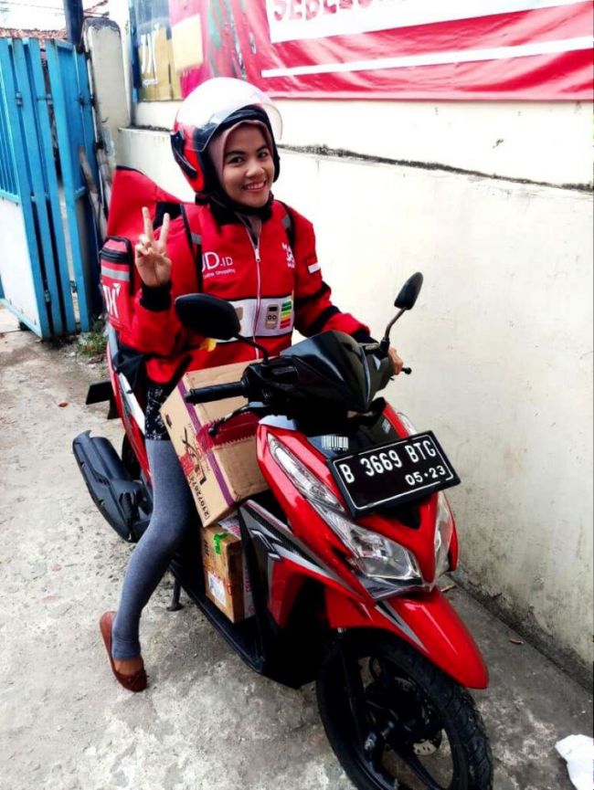 2018年12月12日,印尼消费者Lani在早上8点58分就收到了京东印尼小哥送来的包裹,她是当天零点在京东印尼上下的订单,没想到早上刚起床,快递就到了。