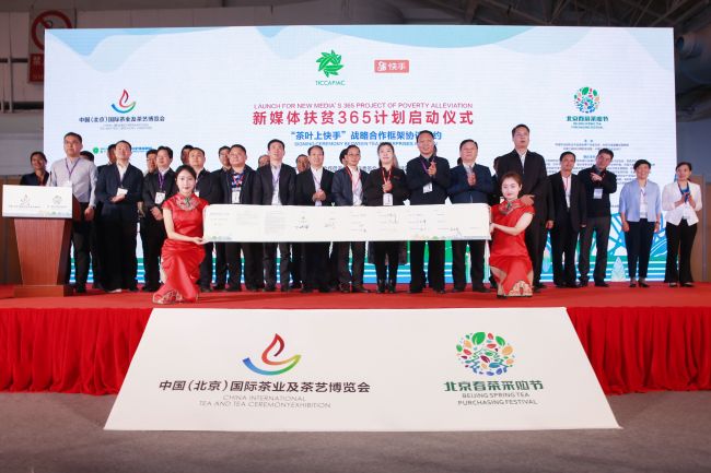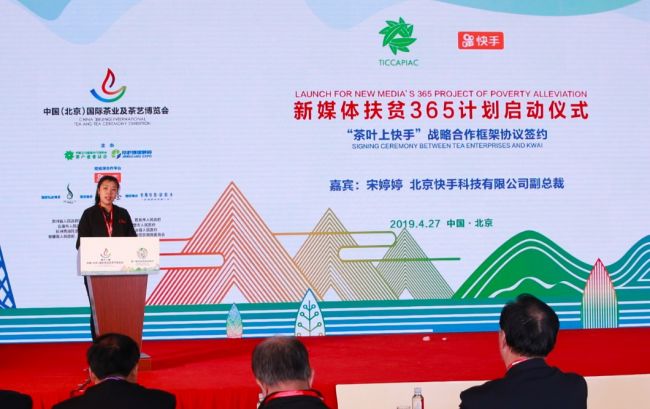 4月27日,为助力贫困地区,快手牵手中国农业国际合作促进会茶产业委员会、各地政府共同发起的“新媒体扶贫365计划”,在中国国际展览中心举办的第十一届中国国际茶业及茶艺博览会开幕式上启动。启动仪式上,快手与中国农业国际合作促进会茶产业委员会、安康市农业农村局、咸宁市咸安区人民政府、水城县人民政府、紫阳县人民政府、平利县人民政府、诏安县人民政府、崇阳县人民政府、通城县人民政府、赤壁市农村农业局、纳雍县农业农村局、平阳县农业农村局、五峰土家族自治县茶叶局在现场共同签署了“新媒体扶贫365计划——茶叶上快手”战略合作框架协议,标志着“新媒体扶贫365计划”迈出了第一步。