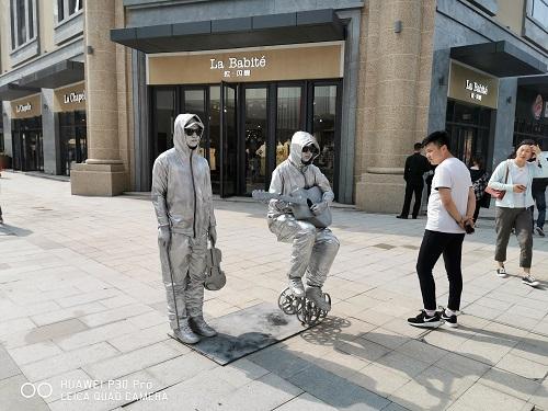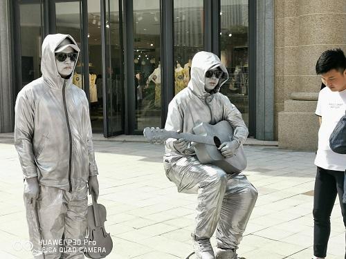 比如在人潮人涌的步行街当中,你的手机拍摄出来是这样的!永远都会有不断的人群过来围观艺术,你总是无法让人准确拍摄到你想要的艺术范儿照片。