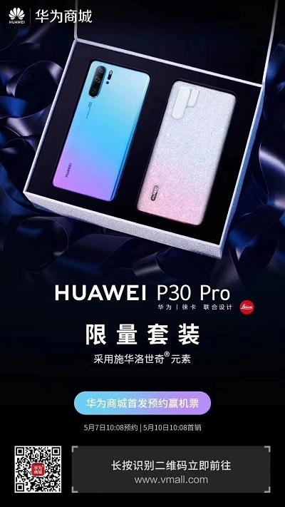 HUAWEI P30 Pro限量套装来袭!今日10:08华为商城开启首发预约,成功预约还有机会赢机票哦!采用施华洛世奇元素,质感和韵味十足,5月10日10:08靓丽首销,敬请期待~