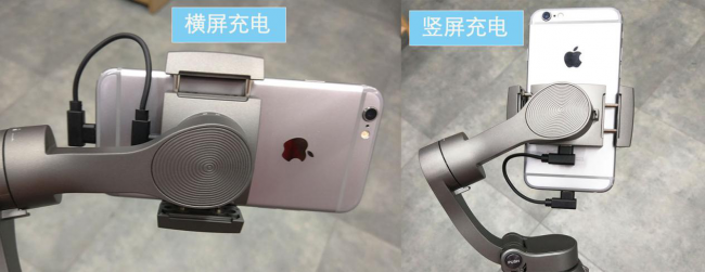 在拍摄视频时,手机电量消耗是非常快的,如何提升拍摄的续航时间,也是稳定器必须要面对的问题。本次测评的三款稳定器都支持给手机供电,但在实际使用中,智云smooth4的充电线接口是micro USB的,而产品配件里,并没有配套的充电线,这意味着你如果要给手机充电的话,还需要单独去购买一根对应的micro UBS充电线,这简直匪夷所思。此外,在拍摄时大疆osmo mobile 2和智云smooth4的充电口经常被遮挡,这也导致充电功能形同鸡肋: