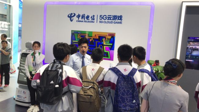 展馆中的5G云课堂引起学生们的注意,中国电信通过5G+MR技术打破了时空限制,让偏远地区的学生也能共享优质教育资源。借助一副MR混合现实眼镜,眼前展现出两个虚拟机器人形象生动地讲解着5G知识,有趣、直观地让学生们了解5G,展现了5G助力学习的校园场景。随行教师表示,“5G云课堂借助VR技术,打破时空限制,以后学习的场景将更加多样化,教育资源也将更能均衡,贫困山区的孩子也能共享优质资源。”