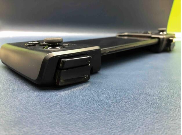 与此同时,Gamevice游戏手柄还像Switch等专业游戏手柄一样,在顶部设计了双扳机键(R/L)与双肩键(R/L),为玩家实现多指联控创造条件,感受劲爽操作带来的游戏乐趣。值得一提的是,该款游戏手柄为了降低玩家在游戏中产生的疲劳感,特意在各个键位运用不同的点击效果,让游戏体验再度提升。