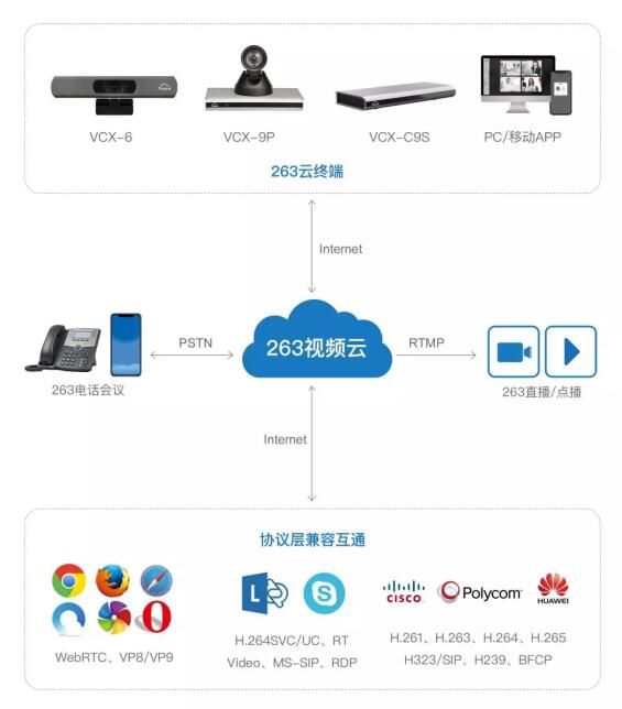 263视频云凭借在云端极强的处理能力,在协议层也可以与主流的浏览器和Lync、Skype等视频软件兼容,以及与市面主流的一些传统的视频会议硬件终端互联互通,政府部门已采购的终端可直接接入,可实现资产的充分利旧。如需替换原有的硬件设备,263视频会议也提供3款智能云终端,可以适配不同规格的会议空间,支持7*24小时待机,即开即用,无需复杂的系统调试,更无需配备专人进行维护,可以为政府部门降低IT运维成本。