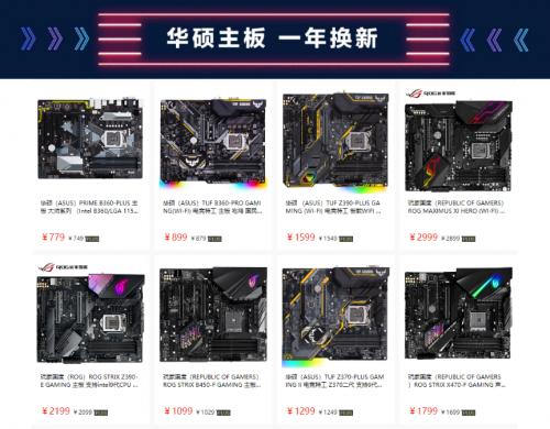 此次大促,华硕主板还特别为大家准备了多款人气爆款。包括ROG玩家国度的MAXIMUS XI HERO(WI-FI)(后简写M11H(WIFI))主板,ROG STRIX Z390-E GAMING、ROG STRIX B450-F GAMING、ROG STRIX X470-F GAMING 3款专业电竞装备,华硕电竞特工系列TUF Z390-PLUS GAMING (WI-FI)、TUF Z370-PLUS GAMING II TUF B360-PRO、 GAMING(WI-FI)3款国民电竞主板,和华硕大师系列PRIME B360-PLUS主板。