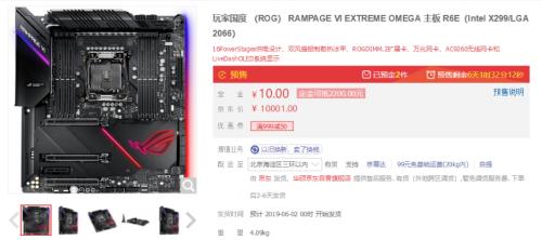 其中,ROG R6E OMEGA最为超值,10元定金抵2200元,到手价仅为7811元。此为华硕旗舰级主板,集华硕诸多顶级技术以及创新应用于一身,包括16 Power Stages供电设计、双风扇铝制散热冰甲、ROG DIMM.2扩展卡、神速万兆网卡、AC 9260无线网卡和LiveDash OLED系统显示屏等,可尽情释放新一代酷睿X系列18核处理器的潜在性能,是X299平台当之无愧的巅峰巨作!