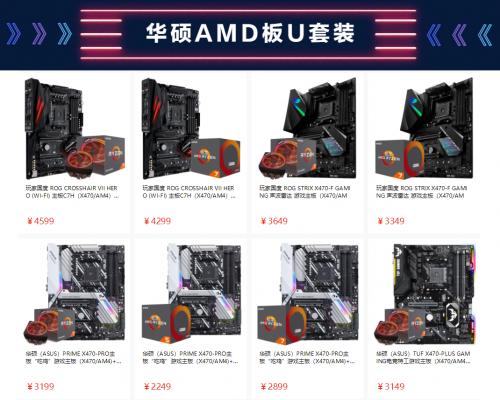除上述基于Intel板U套装外,华硕更为众多A饭们提供了华硕ROG C7H(WIFI)、ROG STRIX X470-F GAMING、PRIME X470-PRO和TUF X470-PLUS GAMING主板,搭第二代AMD锐龙处理器的多款板U套包。近期有装机需求的消费者们可按需搭配,随意选择最心怡的组合,抢先购买,错峰618。
