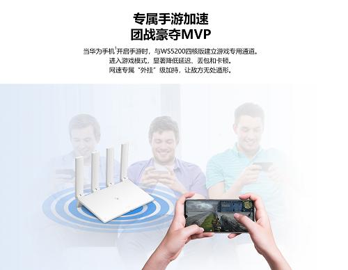 华为路由WS5200四核版在软件方面也有诸多创新特性,首屈一指的便是支持华为手机手游加速。当路由器识别到EMUI9.0及以上的华为手机进入游戏状态时,便会开启游戏模式,显著降低手游常见的延迟、抖动和卡顿,团战MVP不在话下!