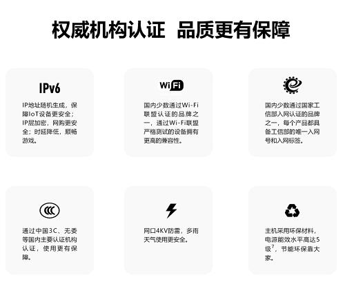 目前华为全系路由均支持IPv6,通过Wi-Fi联盟等权威机构认证,并通过华为严苛的质量测试,给消费营造更加放心的购物体验。