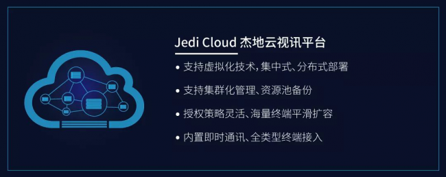 软件云,企业用户只需在自己私网内建设一套Jedi Cloud,各部门通过科达终端,就可以在私网内召开各类云视频会议了。