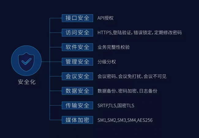 云化后安全是重中之重,科达拥有端到端的云视讯安全解决方案,覆盖接口安全、访问安全、软件安全、管理安全、会议安全、数据安全、传输安全、媒体加密方方面面,保障从系统建设,到会议管理,到数据传输的每一个环节安全。
