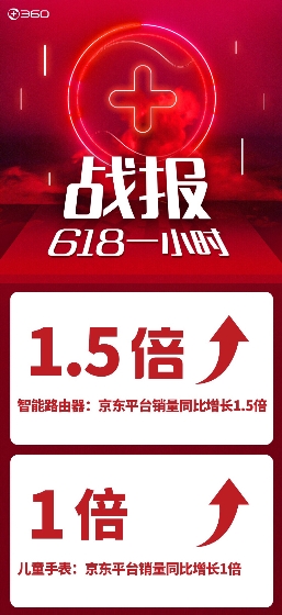 年中剁手大会618终于来了,网友们的嗨购热情在零点后瞬间燃爆!今天凌晨2时1分,360智能硬件官方微博@360Ai家 率先发布了618阶段性战报成绩。从战报来看,360IoT产品中,行车记录仪捧得品牌、单品销量、销售额三冠王;智能摄像机开售1小时销量超去年618全天,销售额同比增长10倍;路由器京东销量同比增长1.5倍;儿童手表京东销量同比倍增……