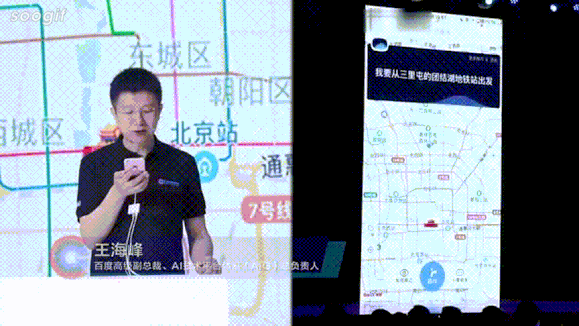 “我要从三里屯的团结湖地铁站出发路过望京的家乐福然后再去南锣鼓巷最后到我家,我要红绿灯少的不堵车的最快的路线,你帮我路线规划一下吧。”去年的开发者大会,王海峰用一段60多字的“rap”级超长服务请求,考验了百度地图一把,赢得满堂喝彩,成为业界津津乐道的AI趣事。