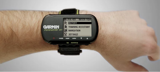 不久之后的2003年,一名热爱跑步的工程师突发奇想,将可携带式GPS手持机与腕表设计结合在一起,机缘巧合中成就了第一块智能穿戴式装备——Forerunner 201运动手表。