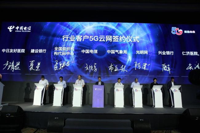 发布会上,中国气象局、全国组织机构代码数据服务中心、中国建设银行等14家企业与中国电信进行了5G合作签约仪式。中央电视台、中国浦东干部管理学院、中国气象台、云南省教育厅、浙江兆丰机电的5位嘉宾做了精彩的案例分享,详细介绍了中国电信与行业联合创新的成果,充分肯定了中国电信5G行业云网的高品质网络服务和用户体验。