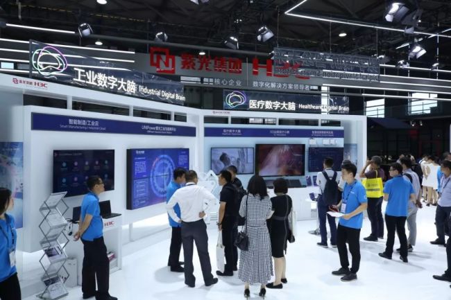 通过深度场景化体验,新华三在展区生动展示了数字大脑计划在百行百业中的典型应用,其中涵盖工业、医疗、教育、城市、安防等行业,以及融媒云、党建云、数字金融以及数字城轨等行业数字化解决方案。