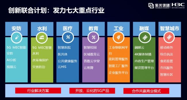 韩志刚介绍,支持行业应用是5G的重要特征,新华三将依托自身在行业的积累和优势,携手运营商构建价值合作体系。2019年,新华三将在安防、水利、医疗、教育、工业、融媒和智慧城市七大垂直行业深耕细作,以5G技术为行业数字化升级赋能。