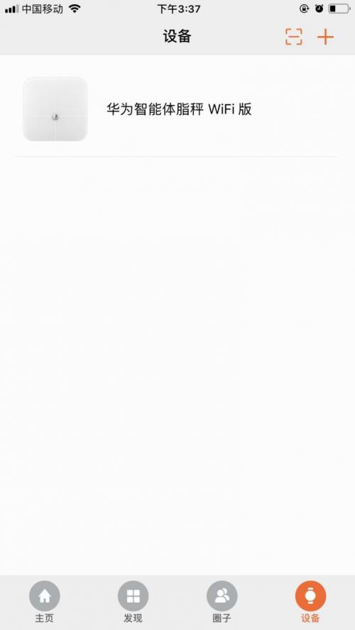 打开手机华为运动健康app,点击“添加设备”-“体脂秤”,选择华为智能体脂秤WiFi版即可完成连接。