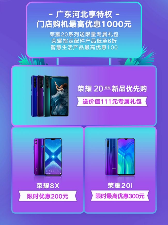在有趣的PK玩法之外,荣耀还为两省用户带来了诚意满满的购机优惠。包括“自拍神器”荣耀20i、“千元屏霸”荣耀8X在内的多款热门机型均参与此次活动,最高优惠可达1000元。购买荣耀年度最强拍照手机荣耀20系列即送价值111元专属礼包,对于一款刚刚发布的旗舰产品,其优惠程度可以说是相当给力。另外在手机产品之外,荣耀智慧生活潮品也给出了全场最高优惠100元,荣耀智能潮配给出了全场最高6折的优惠力度,感兴趣的用户可以多多关注。