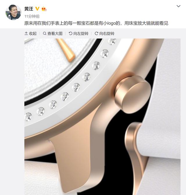 华米科技即将在7月16日举行AMAZFIT全新系列新品发布会,带来AMAZFIT GTR智能手表新品。今天上午,华米科技CEO黄汪放出了疑似AMAZFIT GTR的图片,文案上写着“原来用在我们手表上的每一颗宝石都有小logo的,用珠宝放大镜就能看见”。