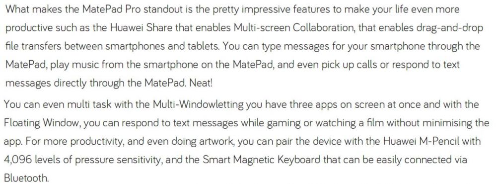 英国老牌科技媒体Stuff除了对华为平板MatePad Pro 5G硬件配置十分满意外,更对它的智慧体验赞不绝口。比如Huawei Share技术支持的“多屏协同”功能,可以使平板与手机之间进行拖拽式文件传输,还可以用平板外置键盘输入手机端消息,或者利用华为平板MatePad Pro 5G四声道四扬声器播放手机音乐,极大提升了用户的娱乐与办公效率。