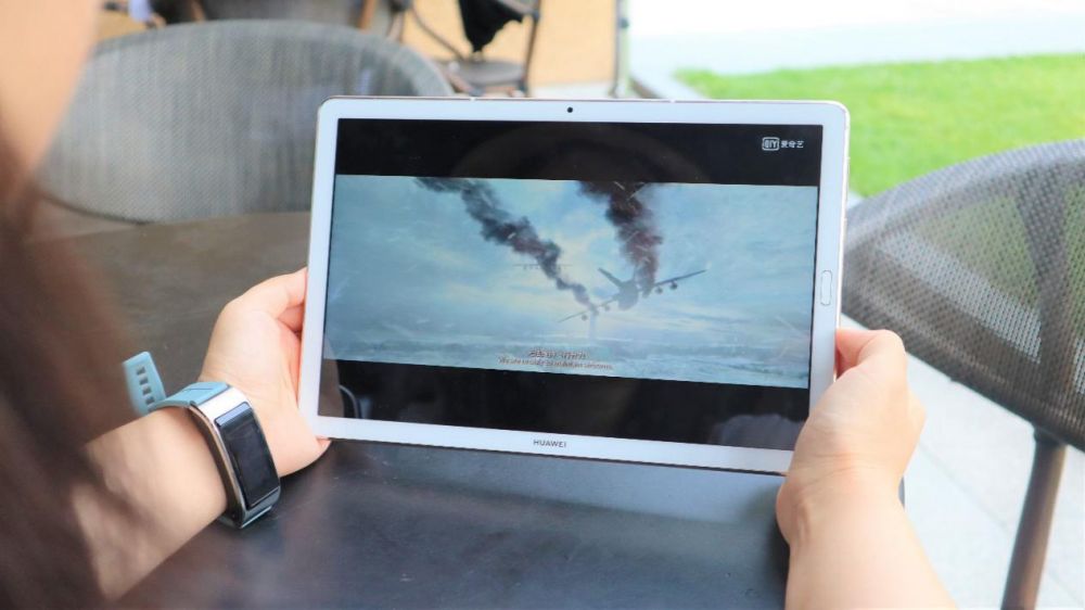 比如:华为平板M6看《流浪地球》中飞机从画面上方飞过的画面,笔者能清楚的感受到发动机的轰鸣在头顶随着画面呼啸而过,配合大振幅扬声器的巨大音量,仿佛置身在发动机强悍的气流中,与小编在电影院体验的临场感,音效效果如出一辙。配合画面下方前进卡车声的渐进,让视频更有沉浸感。