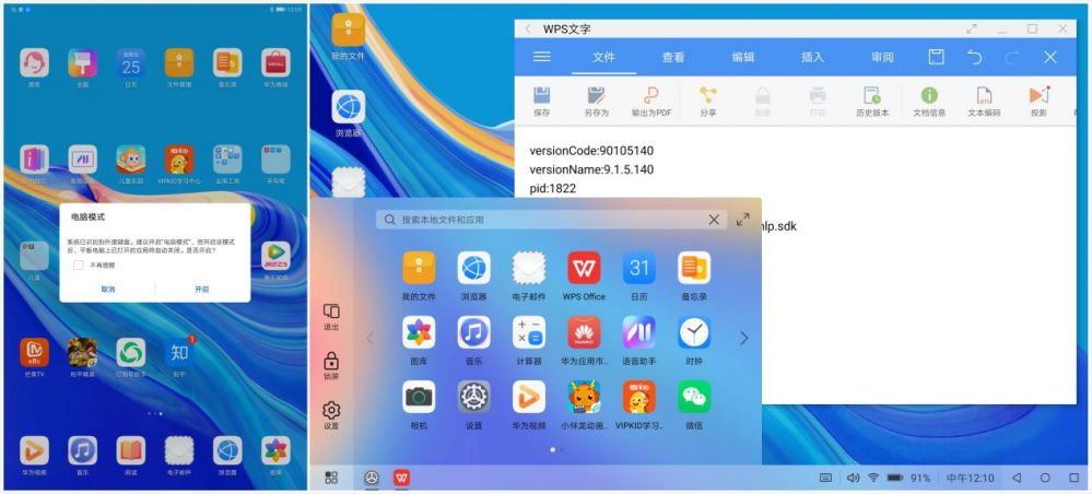换句话说,单纯的直板式平板已经逐渐趋缓,而可插拔键盘的平板电脑才是未来,这次评测的华为M6平板电脑(10.8英寸)就是这样一款可插拔键盘的安卓平板电脑产品。可插拔键盘的设计在安卓平板中不多见,主要是适配的问题。对于这个问题,华为M6的EMUI做了很多的优化,当华为平板M6接可插拔键盘的时候会提示是否切换电脑模式,切换到电脑模式后办公处理(WPS),浏览器,以及操作方式等都有不错的体验。