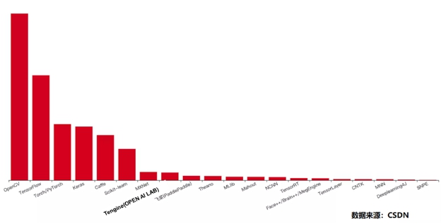 此外,根据IT开发者社区CSDN近期汇总国内外AI工具框架关键词,并基于实际数据梳理的《中国 AI 应用开发者报告》显示,目前在国内的AI开发者中,Tengine成为最受国内AI开发者欢迎的本土AI框架。