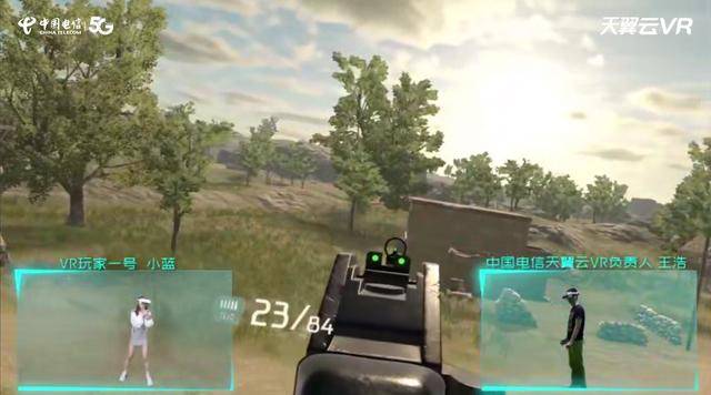 本场发布会不仅采用了广电级虚拟演播方式,还首次在现场与拥有千万粉丝的头号玩家KOL小蓝实时联机,使用Pico Neo2套装,展示了天翼云VR独家首发的《绝命战场》VR吃鸡游戏,双排组队模式零距离并肩作战,带来了一段精彩刺激的游戏直播,游戏全程流畅不卡顿,展现出了超高的性价比。