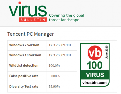 日前,国际权威反病毒评测机构Virus Bulletin公布了6月的VB100测试结果,腾讯安全旗下的腾讯电脑管家(英文版)以100%通过率、0误报的优秀成绩位居榜首,截至目前,腾讯安全已连续获得41次认证,再次刷新连续通过记录,持续领跑国际杀毒软件安全能力。