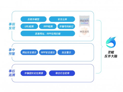 为了协助警方守护民众的财产安全,用科技能力对网络黑产进行全链条的打击治理。腾讯安全反诈骗实验室结合旗下多种反诈科技能力打造灵鲲反诈大脑,制定了一套针对网络诈骗“事前发现、事中预警、事后分析追溯”的全链条对抗打击方案。