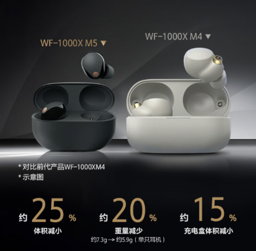 设计方面,索尼WF-1000XM5相比上代产品体积减小约25%,重量减少约20%,仅为5.9克,充电盒体积减小约15%,更加便携轻巧。同时,索尼WF-1000XM5也对耳机结构进行了新一轮优化,让耳机整体更加符合人体工学原理,为用户提供更舒适的佩戴体验以及皮肤接触感。索尼也为降噪豆5新增了SS号耳塞,用户也可根据自身情况,在SS、S、M、L四个不同尺寸的耳塞中选择适合自身耳道大小的耳塞,满足更多消费者需求。