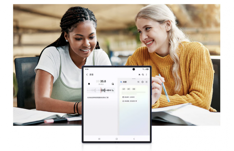 Galaxy AI还能够助力用户轻松应对各种复杂任务,让工作协同无感和高效。例如,使用Galaxy系列手机的转录助手能将语音实时转录为文本,并且还能生成摘要。当会议结束,一份条理清晰、内容完整的会议纪要便已生成,大大节省了整理记录的时间。