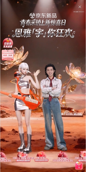 依托 JoyAI大模型诞生的虚拟偶像 “Aura” 成为近期焦点。10月23日京东上新惊喜日当晚,华语乐坛实力唱将华晨宇空降京东青春采销直播间,在火星虚拟场景中,华晨宇与京东 JoyAI大模型生成的虚拟偶像 Aura同框亮相—— 两位恩雅品牌全球代言人,共同开启精彩的跨次元互动,用科技感十足的场景与联动形式,为用户带来打破次元壁的直播体验。