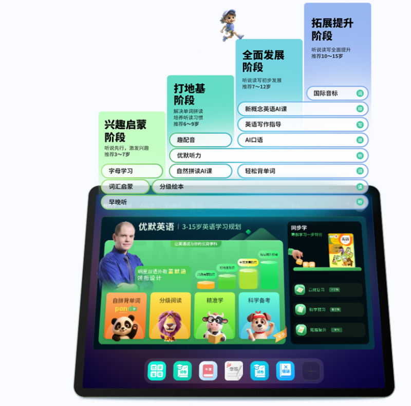董默涵设计的“优默英语”,靠“阅读主线”完美解决了上述三个问题。哪怕孩子是“英语零基础”,甚至连中文都认不全,也能从英国最流行的大猫分级绘本开始,一步步沉浸式学英语:
