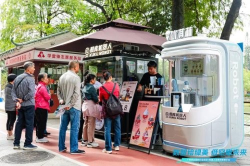 逛累了?在“便民服务驿站”,多才多艺的机器人店员已就位。萌萌的爆米花机器人“噗”地一声,献上一份香甜;酷酷的咖啡机器人则在60秒内,完成从取杯到拉花的精彩演绎。登上全无人驾驶小巴,任它载着您在林荫道上悠然穿行。