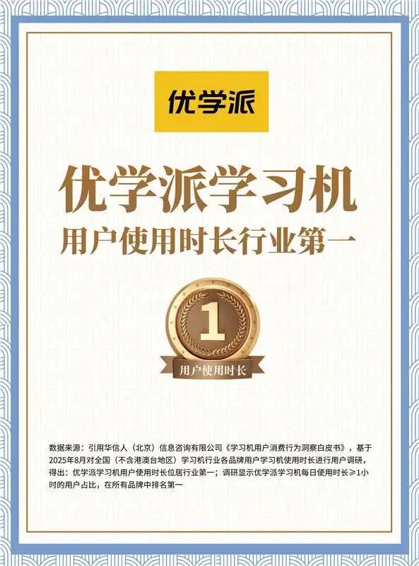 日前,华信人(北京)信息咨询有限公司正式发布《学习机用户消费行为洞察白皮书》,调研结果显示:优学派学习机在用户日均使用时长方面高居行业前列。数据显示,每日使用时长超过1小时的用户比例,优学派在所有主流学习机品牌中位列榜首。这一数据来源于全国范围内 的真实用户调研,充分反映出优学派产品在实际学习场景中的高频使用与深度融入。