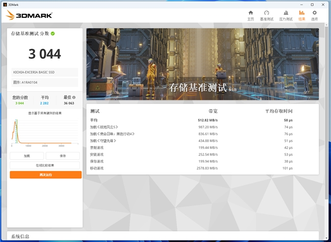 再然后是游戏玩家比较看重的3DMark存储基准测试成绩,主要测试大型3A游戏的加载、录制、安装、保存、移动速度: