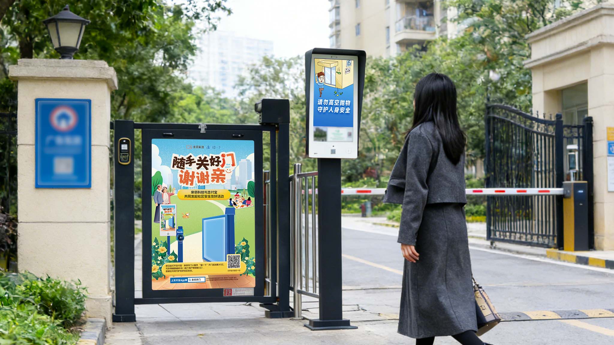 居民使用门禁设备进入小区